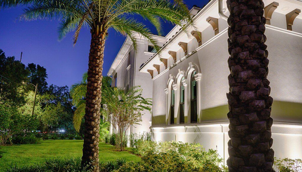 Our outdoor residential landscape lighting solutions include exterior illuminations for the front yard, back yard, the patio area, trees, plants, pathways, sidewalks, decks, stairs, pool cage screen enclosures, docks, and more.